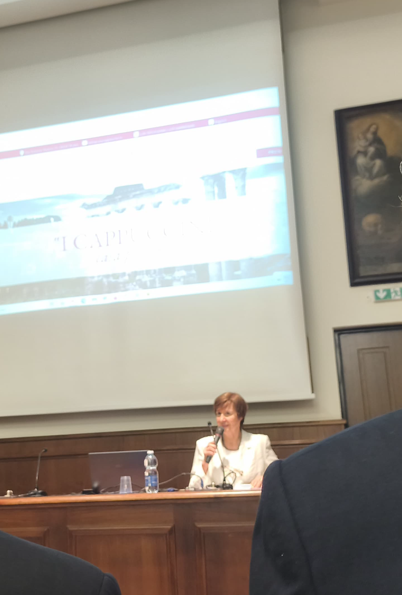 06 Interno Chiesa dei Cappuccini 07 Sala multimediale-ex refettorio 08 Ex allieve in dialogo Prof. Barzotti e Marta Moretti 09 Foto di gruppo 0 10 Foto di gruppo 1